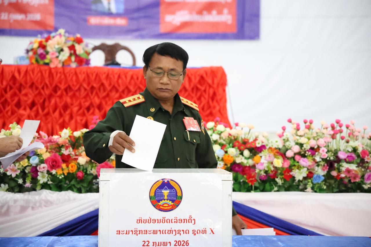 ວັນທີ 22 ກຸມພາ 2026 ນີ້ ຢູ່ທີສະໂມສອນກອງບັນຊາການທະຫານແຂວງບໍ່ແກ້ວ ໄດ້ຈັດຕັ້ງການປ່ອນບັດເລືອກຕັ້ງສະມາຊິກສະພາແຫ່ງຊາດ ຊຸດທີ X ແລະ ສະມາຊິກສະພາຂັ້ນແຂວງ ຊຸດທີ V ໂດຍການເຂົ້າຮ່ວມຂອງ ສະຫາຍ ພັນເອກ ແສງເພັດ ແສງມະນີ ກຳມະການພັກແຂວງ,ຫົວໜ້າການທະຫານ ກອງບັນຊາການທະຫານແຂວງບໍ່ແກ້ວ,ພ້ອມດ້ວຍຄະນະພັກ-ຄະນະບັນຊາ 6 ຫ້ອງ,ບັນດາກົມກອງອ້ອມຂ້າງ ຕະຫຼອດຮອດນາຍ ແລະ ພົນທະຫານເຂົ້າຮ່ວມຢ່າງພ້ອມພຽງ.