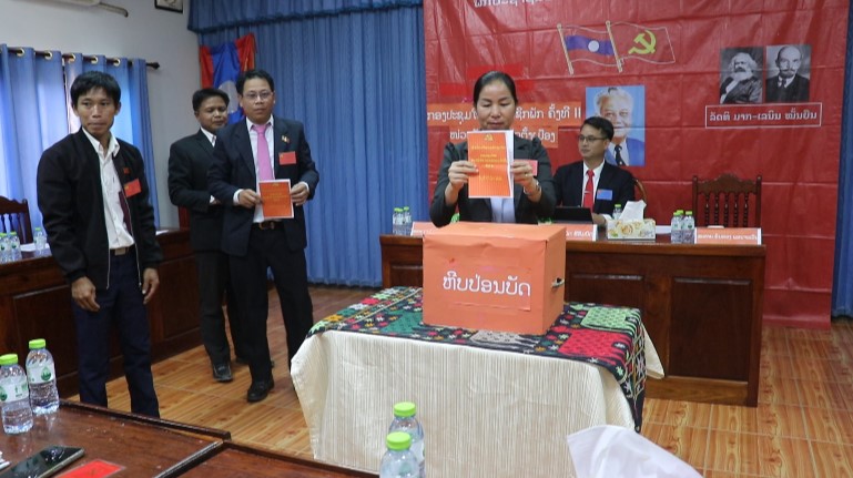 ສະຫາຍ ຂັນທອງ ພອນຈະເລີນ ຮອງເລຂາໜ່ວຍພັກ ໄດ້ຜ່ານ ບົດລາຍບົດລາຍງານການເມືອງ ທັງສອງພາກເຊິ່ງໄດ້ຍົກໃຫ້ເຫັນ ໜ່ວຍພັກ ຄະນະຈັດຕັ້ງເມືອງ ເປັນໜ່ວຍພັກໜື່ງມີສໍານັກງານຕັ້ງຢູ່ຂອບເຂດສໍານັກງານຫ້ອງວ່າການເມືອງເຊີ່ງເປັນເສນາທິການໃຫ້ແກ່ອົງຄະນະພັກເມືອງມີຄວາມສະດວກສະບາຍໃນການປະສານສົມທົບກັບພາກສ່ວນທີ່ກ່ຽວຂ້ອງພາຍໃນເມືອງ,ມີພາລະບົດບາດເປັນເສນາທິການໃຫ້ແກ່ຄະນະບໍລິຫານງານພັກເມືອງ, ໂດຍສະເພາະແມ່ນຄະນະປະຈໍາພັກເມືອງ ໃນການຄົ້ນຄວ້າເຊື່ອມຊຶມ, ຜັນຂະຫຍາຍແນວທາງ ນະໂຍບາຍ, ກົດລະບຽບຂອງພັກ, ກົດໝາຍຂອງລັດ ແລະ ນິຕິກໍາຕ່າງໆ ກ່ຽວກັບວຽກງານກໍ່ສ້າງພັກ-ພະນັກງານ ແລະ ວຽກງານປັບປຸງກົງຈັກການຈັດຕັ້ງ ໃນທົ່ວອົງຄະນະພັກເມືອງ;ພາຍໃນໜ່ວຍທັງໝົດ 10 ສະຫາຍ, ຍິງ 5 ສະຫາຍ, ເປັນສະມາຊິກພັກ ສົມບູນກວມ 100% ໃນນັ້ນມີຄະນະພັກ 3 ສະຫາຍ,ຍີງ 1 ສະຫາຍ, ສະມາຊິກພັກກໍາມະບານ 10 ສະຫາຍ. ຍິງ 5 ສະຫາຍ, ມີສະມາຊິກຊາວໜຸ່ມ 3 ສະຫາຍ, ຍີງ 2 ສະຫາຍ, ສະຫະພັນແມ່ນຍີງ 5 ສະຫາຍ,ຜ່ານມາໜ່ວຍພັກຂອງພວກເຮົາ ໄດ້ຖືເອົາວຽກງານການເມືອງ ແນວຄິດເປັນວຽກງານແຖວໜ້າໃນການເຄື່ອນໄຫວຊີ້ນຳ-ນໍາພາຂອງຕົນ ໂດຍໄດ້ເອົາໃຈໃສ່ສຶກສາອົບຮົມສະມາຊິກພັກ, ພະນັກງານ-ລັດຖະກອນທຸກສະຫາຍ ພາຍໃນໜ່ວຍໃຫ້ຮັບຮູ້ເຊື່ອມຊືມ ກໍາແໜ້ນທິດສະດີມາກ-ເລນິນ, ແນວທາງນະໂຍບາຍ ຂອງພັກ-ລັດ ເຮັດໃຫ້ບັນດາສະຫາຍສະມາຊິກພັກພາຍໃນໜ່ວຍມີທັດສະນະຫຼັກໝັ້ນຮູ້ຈຳແນກໄດ້ມິດ-ສັດຕູ ມີຄວາມຈົງຮັກພັກດີຕໍ່ພັກ, ຕໍ່ປະເທດຊາດ, ຈາກນັ້ນ ຄະນະໜ່ວຍພັກຊຸດເກົ່າ ໄດ້ລາໜ້າທີ່ຕໍາແໜ່ງ, ກອງປະຊຸມໄດ້ມີການປ່ອນບັດ ເລືອກເອົາຄະນະພັກຊຸດໃໝ່ ເຊິ່ງມີຜູ້ສະມັກ 3 ສະຫາຍ, ຍິງ2 ສະຫາຍ, ຜ່ານການດໍາເນີນການປ່ອນບັດຕົວຈິງ,ພ້ອມທັງດໍາເນີນກອງປະຊຸມຄັ້ງປະຖົມມະລືກ ເຊິ່ງໄດ້ເລືອກເອົາ ສະຫາຍ ນາງ ອິ່ນທອງ ເລືອງສີຈັນທອງ ເປັນເລຂາໜ່ວຍພັກ, ສະຫາຍ ຂັນທອງ ພອນຈະເລີນ ເປັນຮອງເລຂາໜ່ວຍພັກ ພ້ອມທອງເຮັດວຽກງານກວດກາໜ່ວຍພັກ.