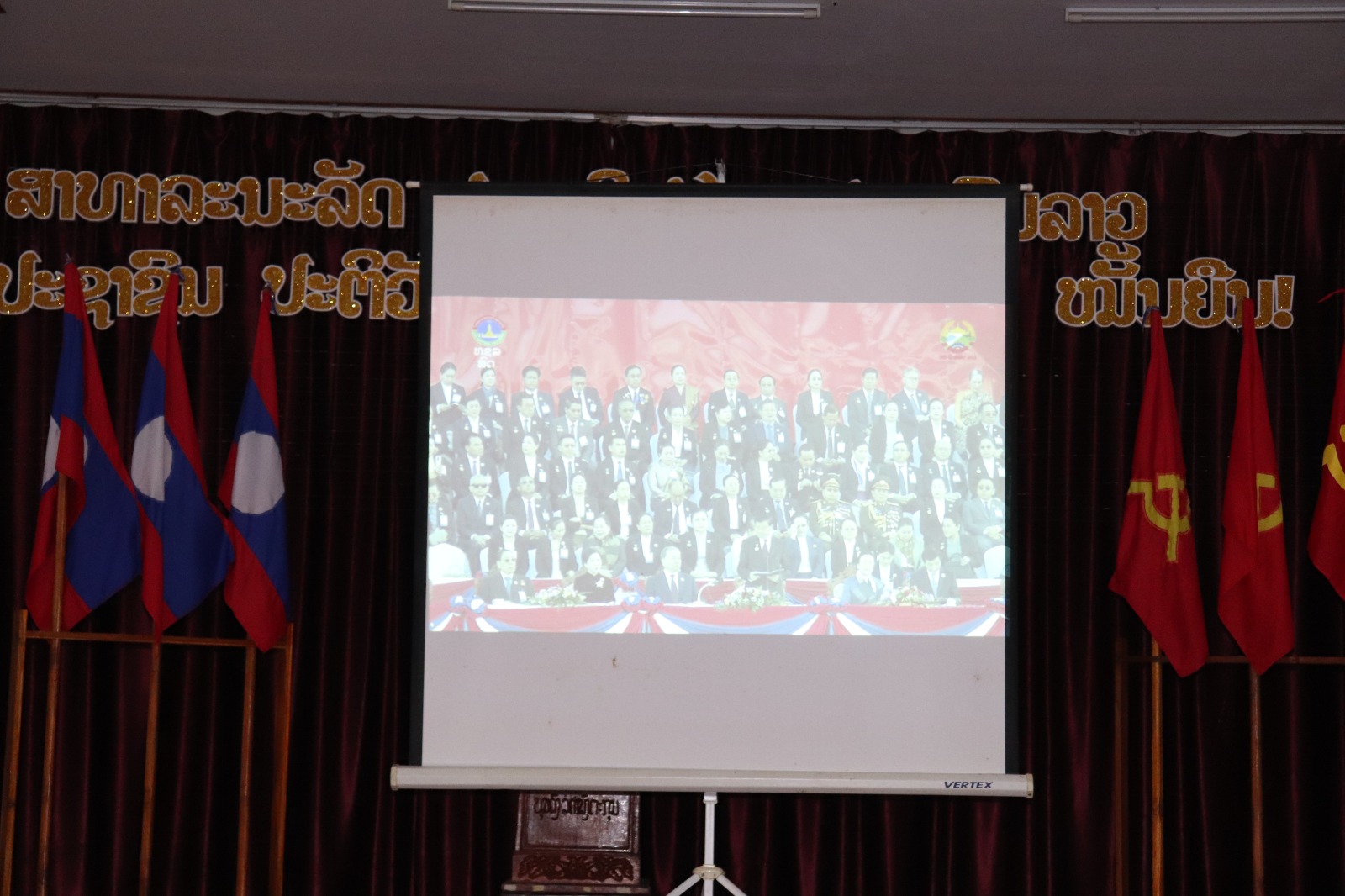 ໃນພິທີ, ບັນດາການນຳ ແລະ ຜູ້ເຂົ້າຮ່ວມ ໄດ້ຕັ້ງໃຈຮັບຊົມ ແລະ ຮັບຟັງການຖ່າຍທອດສົດ ສະຫາຍເລຂາທິການໃຫຍ່, ປະທານປະເທດ ແຫ່ງ ສປປ ລາວ ກ່າວສູນທອດພົດເປີດພິທີສະເຫຼີມສະຫຼອງ ວັນສະຖາປະນາ ສປປ ລາວ ຄົບຮອບ 50 ປີ ບາງຕອນວ່າ: ຕະຫຼອດໄລຍະ 50 ປີ ແຫ່ງພາລະກິດປົກປັກຮັກສາ ແລະ ພັດທະນາ ສປປ ລາວ, ພວກເຮົາ ໄດ້ຢືນຢັນຢ່າງໜັກແໜ້ນ ເຖິງທາດແທ້, ມູນເຊື້ອປະຕິວັດ ທີ່ເປັນບົດຮຽນໃຫ້ແກ່ການສືບຕໍ່ພາປະເທດກ້າວຂຶ້ນ, ນັ້ນແມ່ນ “ ຍຶດໜັ້ນອຸດົມການສັງຄົມນິຍົມ, ເສີມຂະຫຍາຍມະຫາສາມັກຄີທົ່ວປວງຊົນລາວທັງຊາດ ເພື່ອບູລະນະ ລະບອບປະຊາທິປະໄຕປະຊາຊົນ ໃຫ້ເຂັ້ມແຂງ, ສ້າງລັດ ທີ່ມາຈາກປະຊາຊົນ ໂດຍປະຊາຊົນ ເພື່ອປະຊາຊົນ, ອຳນາດລັດທັງໝົດ ເປັນຂອງທົ່ວປວງຊົນລາວ ຢ່າງແທ້ຈິງ ແລະ ເຮັດທຸກສິ່ງທຸກຢ່າງ ເພື່ອຄວາມສົມບູນພູນສຸກ ຂອງປະຊາຊົນ ” ເຊິ່ງເປັນອຸດົມການອັນເດັດດ່ຽວ, ສະເໝີຕົ້ນສະເໝີປາຍຂອງພັກເຮົາ ແລະ ເປັນຄວາມມຸ້ງຫວັງອັນແຮງກ້າ ຂອງປະຊາຊົນລາວ ບັນດາເຜົ່າ ທີ່ພວກເຮົາ ແລະ ຄົນຮຸ່ນໜຸ່ມ ຜູ້ສືບທອດ ຕ້ອງສືບຕໍ່ຍຶດໝັ້ນ ເພື່ອນຳພາພາລະກິດປະຕິວັດ, ນຳພາປະເທດເຮົາ ກ້າວຂຶ້ນສູ່ສັງຄົມນິຍົມ ຢ່າງໜັກແໜ້ນ.