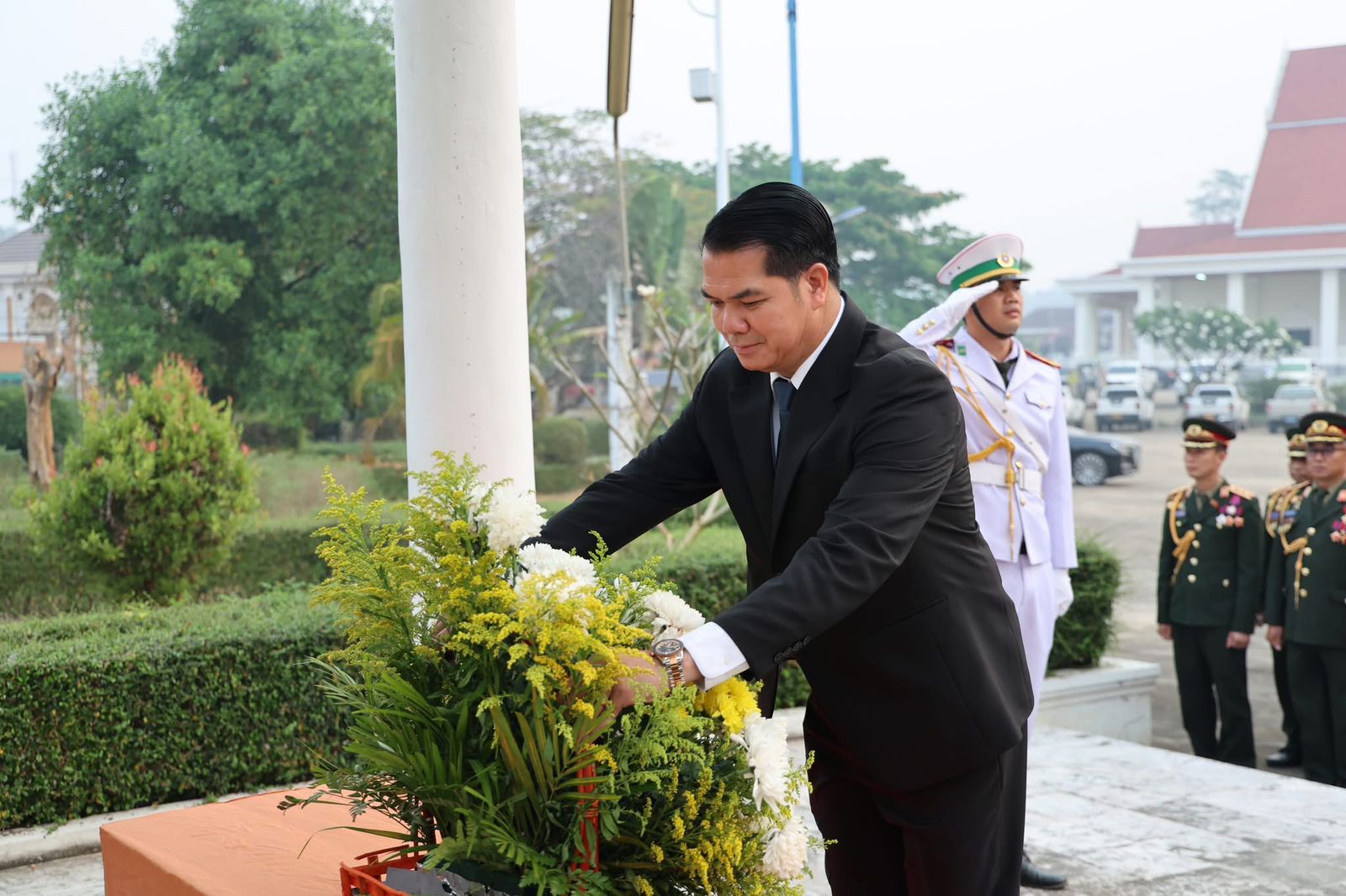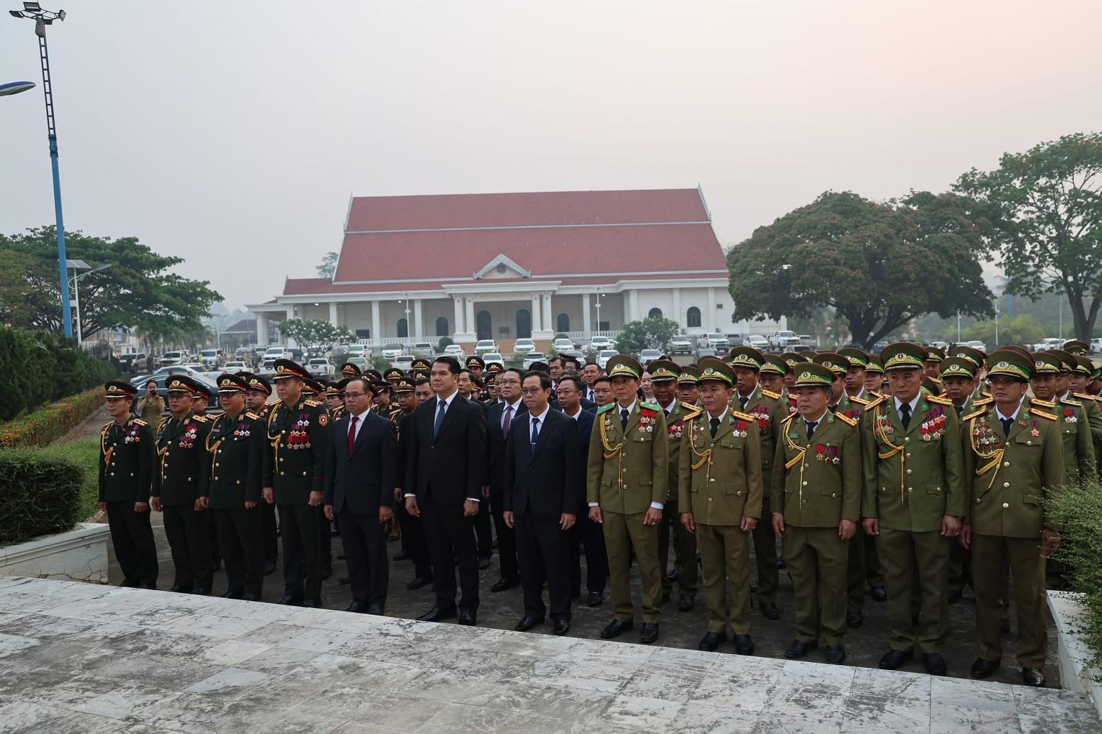 ວັນທີ 4 ເມສາ 2026 ນີ້. ເວລາ 6 ໂມງ 30 ນາທີ ການນໍາຂອງແຂວງບໍ່ແກ້ວ ນໍາໂດຍສະຫາຍ ພົ.ວ ແປ້ນຄຳ ບຸດຈັນແພງ ກຳມະການສູນກາງພັກ ເລຂາຄະນະບໍລິຫານງານພັກແຂວງບໍ່ແກ້ວ ພ້ອມດ້ວຍຄະນະນຳຂອງແຂວງ, ມີຄະນະນຳກອງບັນຊາການທະຫານແຂວງ, ກອງບັນຊາການປ້ອງກັນຄວາມສະຫງົບແຂວງ, ບັນດາພະແນກການອ້ອມຂ້າງແຂວງ ໄດ້ເຂົ້າວາງພວງມະລາທີ່ອະນຸສາວະລີນັກຮົບນິລະນາມ (ຄ້າຍປ່າໄລ່) ແລະ ວາງກະຕ່າດອກໄມ້ທີ່ອະນຸສາວະລີ ປະທານ ໄກ ສອນ ພົມວິຫານ ເນື່ອງໃນໂອກາດວັນສ້າງຕັ້ງກໍາລັງປ້ອງກັນຄວາມສະຫງົບ ຄົບຮອບ 65 ປີ ( 5 ເມສາ 1961-5 ເມສາ 2026 ).
