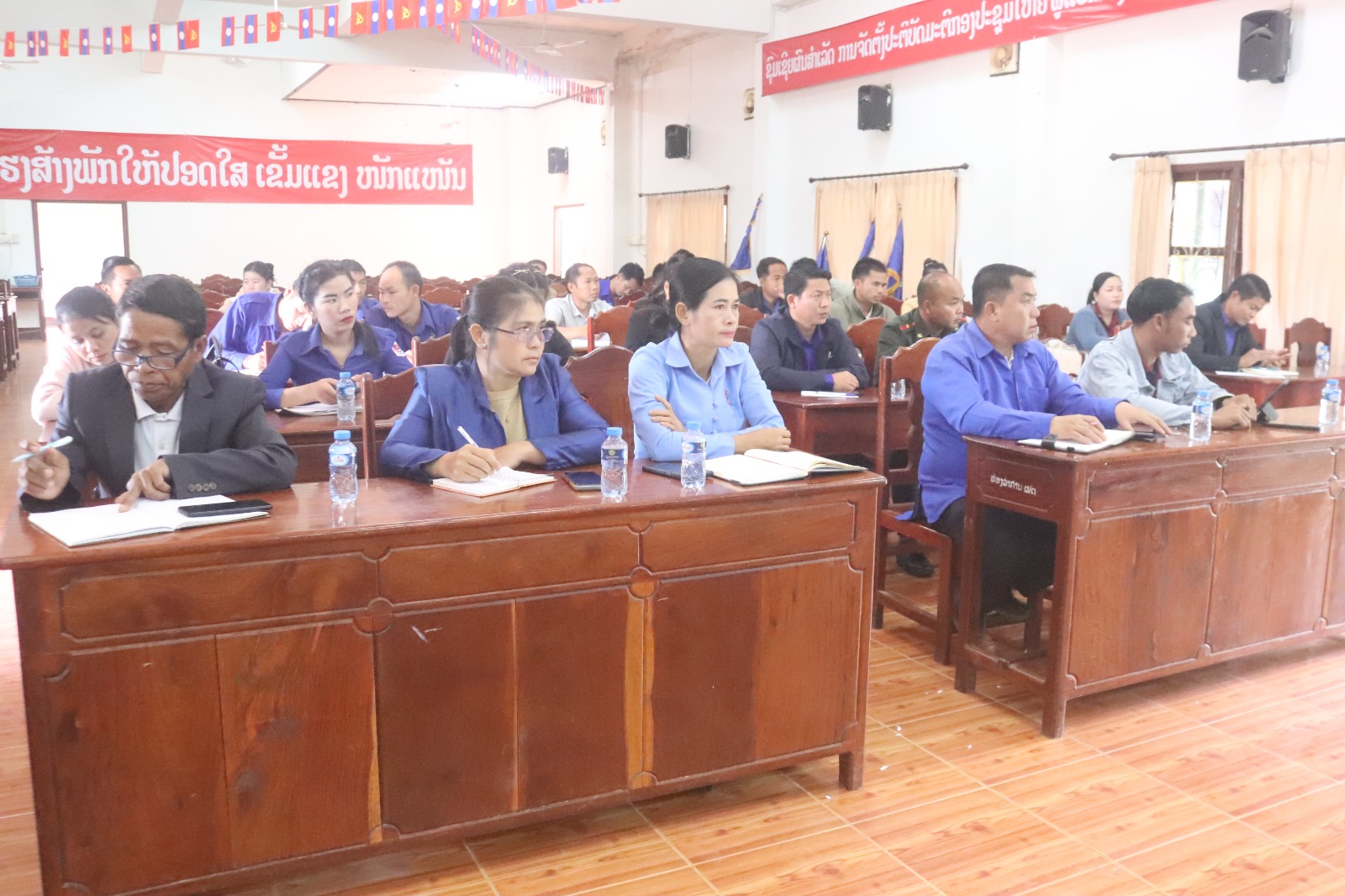 ໂອກາດນີ້, ສະຫາຍ ບຸນເລື່ອນ ສິດຊົມພູ ປະທານແນວລາວສ້າງຊາດເມືອງ ( ຜູ້ຊີ້ນໍາວຽກງານອົງການຈັດຕັ້ງມະຫາຊົນ )ໄດ້ມີຄໍາເຫັນໂອລົມ ກ່ອນອື່ນ ສະຫາຍ ໄດ້ສະແດງຄວາມຍ້ອງຍໍຊົມເຊີຍຕໍ່ກັບຜົນສໍາເລັດໃນການຈັດຕັ້ງປະຕິບັດໜ້າທີ່ວຽກງານຂອງຄະນະບໍລິຫານງານຊາວໜຸ່ມເມືອງທີ່ຍາດມາໄດ້ໃນໄລຍະຜ່ານມາ ແລະສະຫາຍໄດ້ຮຽກຮ້ອງມາຍັງຄະນະບໍລິຫານງານຊາວໜຸ່ມເມືອງທຸກຂັ້ນຈົ່ງພ້ອມກັນເອົາໃຈໃສ່ສຶກສາອົບຮົມການເມືອງ-ແນວຄິດໃຫ້ແກ່ສະມາຊິກຊາວໜຸ່ມ-ໄວໜຸ່ມ, ຕະຫຼອດຮອດນ້ອງນ້ອຍເຍົາວະຊົນ, ອານຸຊົນທັນວາ ທີ່ຢູ່ໃນຄວາມຮັບຜິດຊອບຂອງຕົນ ໃຫ້ຮູ້ຈັກພາລະບົດບາດ, ສິດໜ້າທີ່ຂອງຕົນເອງ ແລະເຊື່ອມຊຶມກໍາແໜ້ນຕໍ່ກັບຂໍ້ແຂ່ງຂັນ 4 ບຸກຂອງຊາວໜຸ່ມ, ກໍາໄດ້ຂໍ້ແຂ່ງຂັນ 3 ດີ 4 ຮູ້ຂອງເຍົາວະຊົນ ແລະຄຳສອນ 6 ຮັກ 3 ຊັງໃຫ້ກາຍເປັນບຸກຄົນສືບທອດທີ່ດີຂອງ ພັກ-ລັດ ຕະຫຼອດໄປ.