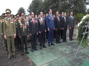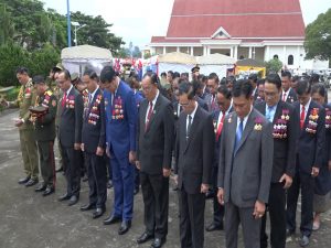 ຄະນະບໍລິຫານງານພັກແຂວງບໍ່ແກ້ວ ວາງພວງມາລາ ແລະ ກະຕ່າດອກໄມ້