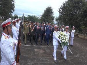 ພິທີວາງກະຕ່າ ຢູ່ອານຸສາວະລີນັກຮົບນິລະນາມ ( ຄ້າຍປ່າໄລ່ ) ແລະ ອະນຸສອນ​ສະຖານ​ປະທານ ​ໄກສອນ ພົມວິຫານ