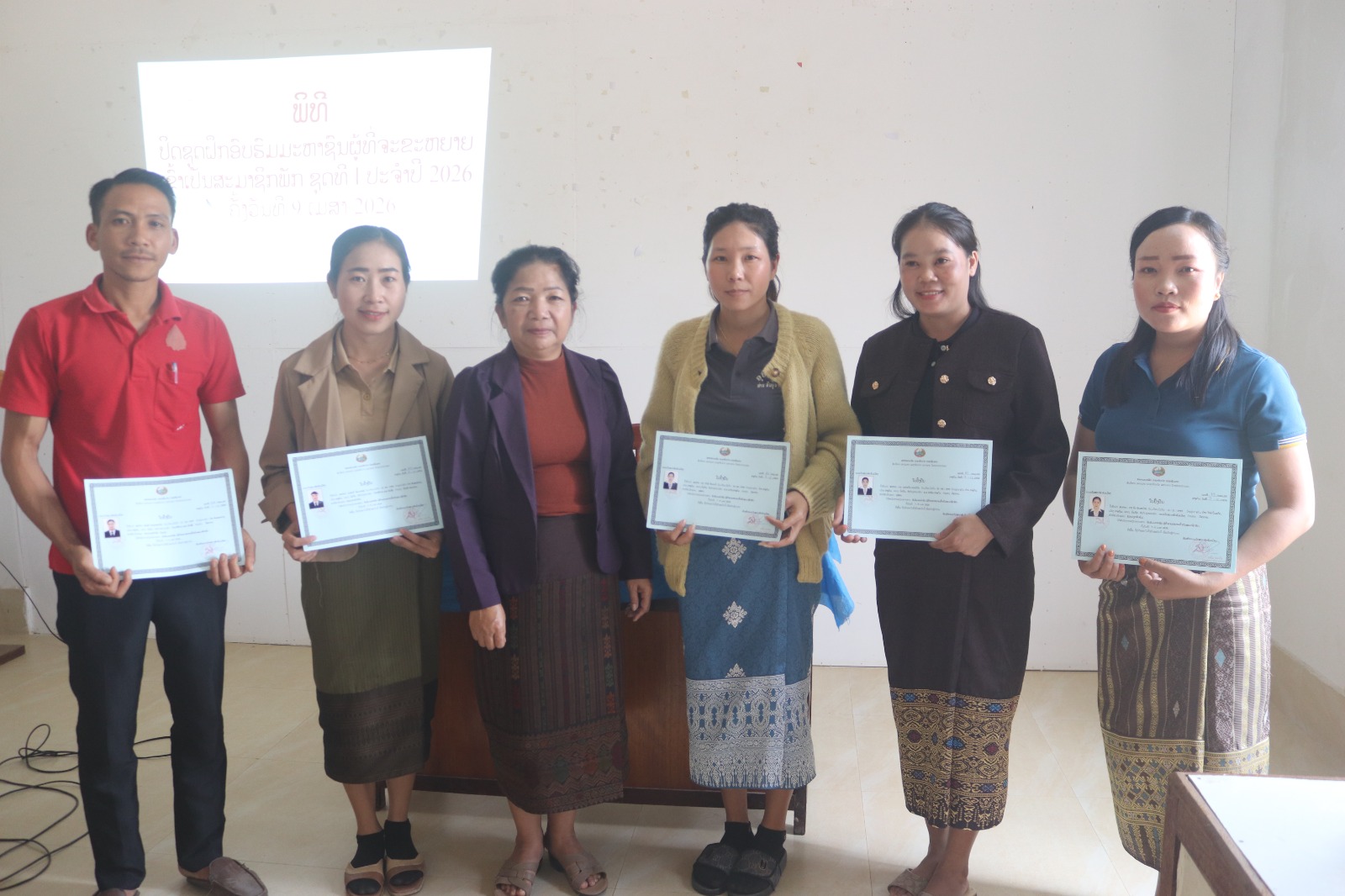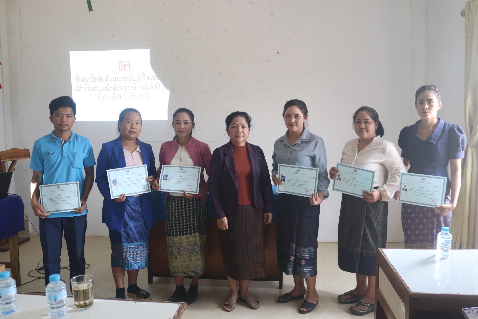 ຜ່ານການຝຶກອົບຮົມມະຫາຊົນຜູ້ທີ່ຈະຂະຫຍາຍເຂົ້າເປັນສະມາຊິກພັກ ເປັນເວລາ 3 ວັນ ໂດຍເລີມແຕ່ ວັນທີ 7 ເມສາ ຫາ ວັນທີ 9 ເມສາ 2026ນີ້ ເຫັນວ່າ: ຜູ້ເຂົ້າຝຶກອົບຮົມ ແມ່ນມີຄວາມຮັບຮູ້ຕໍ່ບົດຮຽນ ທີ່ຖືກຕ້ອງກັບນະໂຍບາຍຂອງພັກ-ລັດ ເຊິ່ງມັນໄດ້ກາຍເປັນພື້ນຖານໃຫ້ແກ່ການໝູນໃຊ້ເຂົ້າໃນວຽກງານຕົວຈິງ, ສາມາດປັບປຸງໄດ້ທັດສະນະຫຼັກໝັ້ນ ທາງດ້ານການເມືອງ, ຄຸນສົມບັດສິນທຳປະຕິວັດ, ມີທັດສະນະມະຫາຊົນ ຈຳແນກໄດ້ມິດ-ສັດຕູຢ່າງຈະແຈ້ງ, ມີຄວາມຮັບຜິດຊອບຕໍ່ໜ້າທີ່ວຽກງານ ແລະ ເປັນແບບຢ່າງທີ່ດີໃຫ້ແກ່ມະຫາຊົນ ໃນຕໍ່ໜ້າ ໂດຍໄດ້ຜ່ານການປະເມີນການຂຽນບົດຄວາມຮັບຮູ້ ເຊິ່ງສາມາດສະແດງອອກດັ່ງນີ້: ດີຫຼາຍ 04 ສະຫາຍ, ຍິງ 03 ສະຫາຍ; ດີ 13 ສະຫາຍ, ຍິງ 08 ກາງ 01 ສະຫາຍ, ຍິງ 01 ສະຫາຍ.