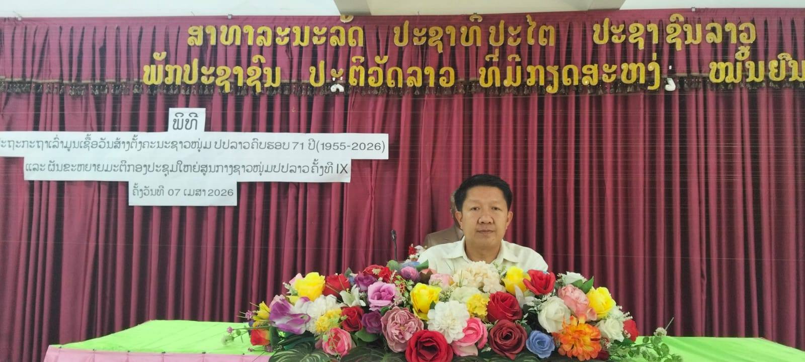 ສະຫາຍ ນີລະພົບ ທອງສະຫວັດ, ຄະນະປະຈຳພັກເມືອງ ໄດ້ໃຫ້ກຽດຂຶ້ນປາຖະກະຖາວັນສ້າງຕັ້ງຄະນະຊາວໜຸ່ມປະຊາຊົນ ປະຕິວັດລາວ ຄົບຮອບ 71 ປີ; ເຊິ່ງໄດ້ໃຫ້ຮູ້ວ່າ: ຕະຫຼອດໄລ່ຍະ 71 ປີທີຜ່ານມາແຫ່ງການເຕົ້າໂຮມ, ການປົກປັກຮັກສາ ແລະ ສ້າງສາພັດທະນາປະເທດຊາດນັ້ນ, ຊາວໜຸ່ມຈຳນວນບໍ່ໜ້ອຍໄດ້ເສຍສະຫຼະຊີວິດ ແລະ ເລືອດເນື້ອເພື່ອປົກປັກຮັກສາເອກະລາດ ແລະ ຜືນແຜ່ນດີນອັນແສນຮັກຂອງຕົນໃວ້ ແລະ ຜ່ານຂະບວນການດັ່ງກ່າວນັ້ນໄດ້ເກີດມີບັນພະບູລຸດທີມີຊື່ສຽງຄື: ເຈົ້າຂຸນບູລົມ, ເຈົ້າຟ້າງຸ່ມ, ເຈົ້າສຸລິຍະວົງ, ທ່ານໄກສອນ ພົມວິຫານ ແລະ ຜູ້ອື່ນໆ. ເຊິ່ງບັນພະບູລຸດເຫຼົ່ານັ້ນ ເຄີຍນຳພາປວງຊົນລາວທັງຊາດຕໍ່ສູ້ຕ້ານການຮຸກຮານຂອງສັດຕູພາຍນອກ, ໄດ້ນຳເອົາປະເທດຊາດຜ່ານພົ້ນພາຍຸລົມແດງໃນແຕ່ລະຍຸກແຕ່ລະສະໄໝ ແລະ ສາມາດຮັກສາດີນແດນໃວ້ຢ່າງໝັ້ນຄົງ, ນ້ຳໃຈຮັກເຊື້ອແພງຊາດບໍ່ຍອມຈຳນົນຕໍ່ສັດຕູ ແລະ ນ້ຳໃຈເສຍສະຫຼະເລືອດເນື້ອອັນໜຸ່ມແໜ້ນເພື່ອປະເທດຊາດໄດ້, ຖືກອົບຮົມບົ່ມສອນພວກເພີ່ນມາແຕ່ຍັງໜຸ່ມ ສະນັ້ນ, ພັກປະຊາຊົນ ປະຕິວັດລາວໄດ້ຂະໜານນາມໃຫ້ວ່າ: ຊາວໜຸ່ມເປັນແຂນຂວາຂອງພັກ ເປັນກະດູກສັນຫຼັງຂອງຊາດ ເປັນຜູ້ສືບທອດມູນເຊື້ອ ແລະ ວິລະກຳປະຫວັດສາດທີຈົງຮັກພັກດີຕໍ່ພັກ ຕໍ່ຊາດທັງໝົດນັ້ນແມ່ນມູນເຊື້ອອັນລວມຍອດຂອງຊາວໜຸ່ມລາວທີໄດ້ຕອບສະໜອງຄວາມຮຽກຮ້ອງຕ້ອງການຂອງປະເທດຊາດໃນການເຮັດສຳເລັດພາລະກຳປະຫວັດສາດຂອງຕົນຄື: ປົດປ່ອຍປະເທດຊາດ ແລະ ພວມຂະຫຍາຍບົດບາດປະຈັນບານເຂົ້າໃນ 2 ໜ້າທີ່ຍຸດທະສາດຄື  ປົກປັກຮັກສາ  ແລະ  ສ້າງສາພັດທະນາປະເທດຊາດຕາມທິດຢືນຍົງສູ່ຈຸດໝາຍສັງຄົມນິຍົມ, ໃນຂະບວນການຕໍ່ສູ້ຕ້ານຈັກກະພັດໃນແຕ່ລະໄລ່ຍະ ກໍ່ໄດ້ມີກໍາລັງສູ້ຮົບຂອງກອງເຈົ້າໄຊຍະຈັກກະພັດ, ກອງເຈົ້າຟ້າປັດໄຈ ແລະ ກອງກຳລັງອື່ນໆ ນັ້ນແມ່ນຊາວໜຸ່ມມາຈາກກໍາລັງປະກອບອາວຸດເອີ້ນວ່າ: ຄະນະຊາວໜຸ່ມຕະລຸມບອນ ເຊິ່ງໄດ້ມີບົດບາດຕະລຸມບອນ ບໍ່ວ່າແນວໜ້າ ຫຼື ແນວຫຼັງກໍ່ລ້ວນແຕ່ມີກໍາລັງຂອງຊາວໜຸ່ມ, ສະນັ້ນ ພາຍຫຼັງພັກໄດ້ດຳເນີນກອງປະຊຸມໃຫຍ່ຄັ້ງທີ 1 ໄດ້ກຳນົດເອົາວັນທີ 22 ມີນາ 1955 ເປັນວັນສ້າງຕັ້ງພັກປະຊາຊົນ ປະຕິວັດລາວ ແລະ ຍ້ອນເຫັນໄດ້ບົດບາດຄວາມສຳຄັນຂອງຊາວໜຸ່ມ ພັກໄດ້ກໍານົດເອົາວັນສ້າງຕັ້ງຄະນະຊາວໜຸ່ມປະຊາຊົນ ປະຕິວັດລາວຂຶ້ນໃນວັນທີ 14 ເມສາ 1955 ນັບແຕ່ນັ້ນເປັນຕົ້ນມາ.