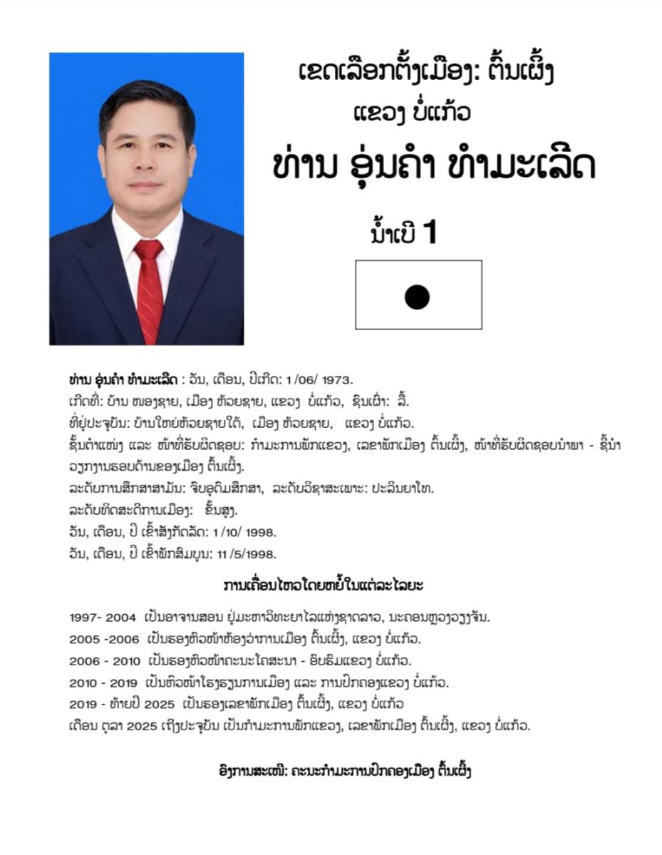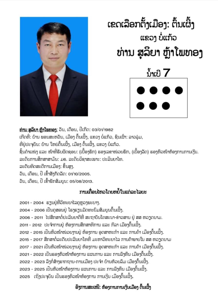 #ຜູ້ສະໝັກຮັບເລືອກຕັ້ງສະມາຊິກສະພາປະຊາຊົນຂັ້ນແຂວງ ຊຸດທີ໕ #ເຂດເລືອກຕັ້ງ ( ເມືອງຕົ້ນເຜິ້ງ ).