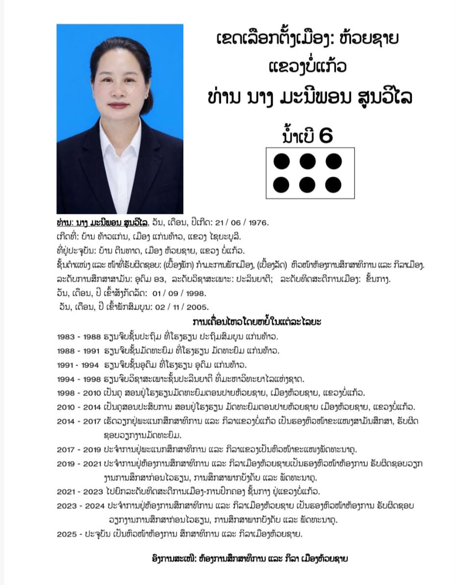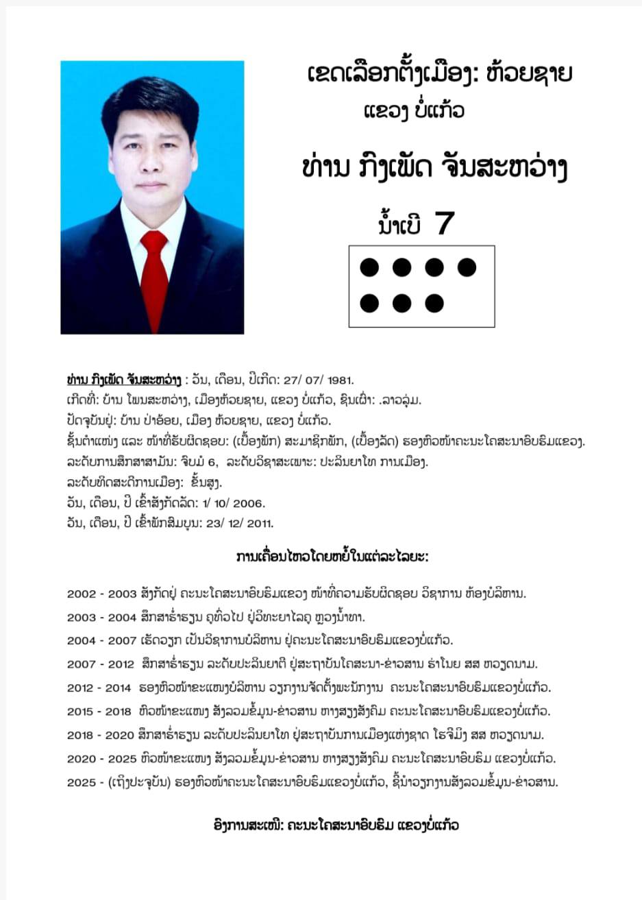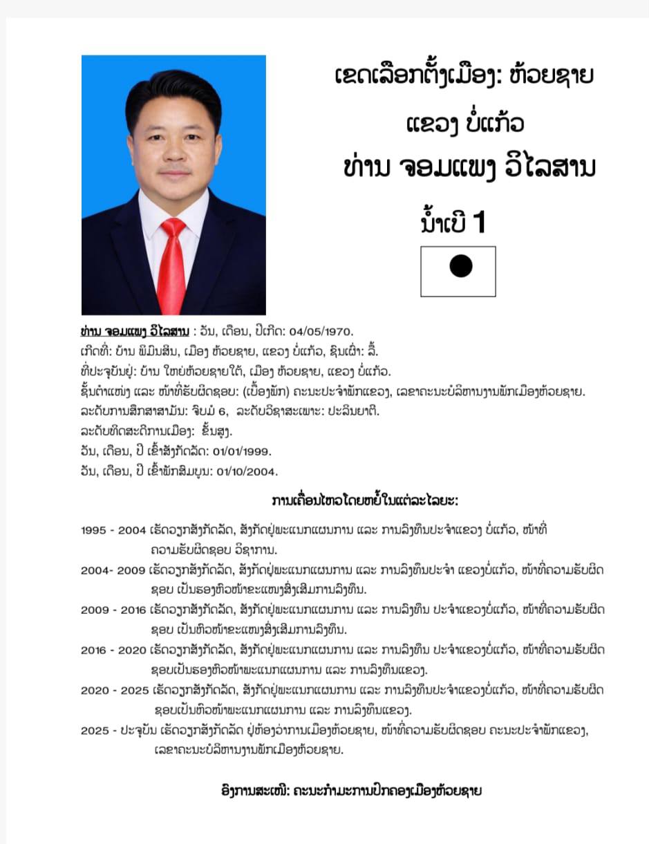 #ຜູ້ສະໝັກຮັບເລືອກຕັ້ງສະມາຊິກສະພາປະຊາຊົນຂັ້ນແຂວງ ຊຸດທີ໕ #ເຂດເລືອກຕັ້ງ ( ເມືອງຫ້ວຍຊາຍ).