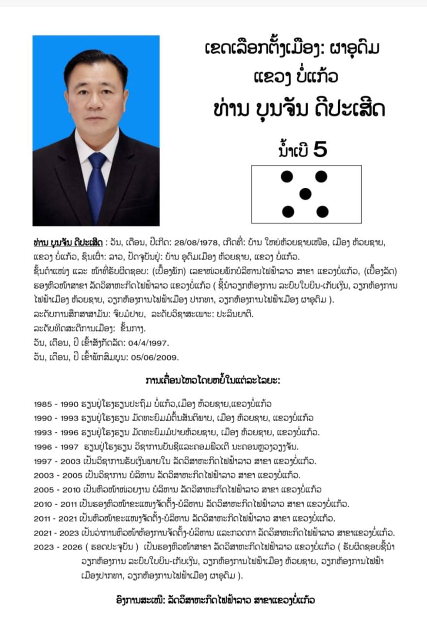 ຜູ້ສະໝັກຮັບເລືອກຕັ້ງສະມາຊິກສະພາປະຊາຊົນຂັ້ນແຂວງ ຊຸດທີ໕ #ເຂດເລືອກຕັ້ງ ເມືອງຜາອຸດົມ.