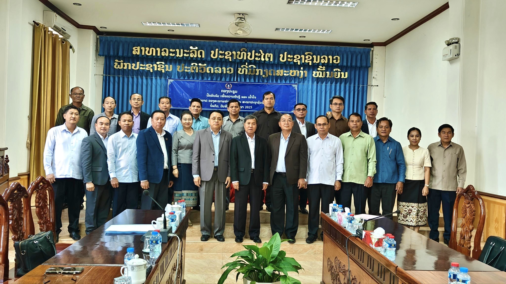 ຊຸດຝຶກອົບຮົມ ເພື່ອຄວາມຮັບຮູ້ ແລະ ເຂົ້າໃຈຕໍ່ພາລະບົດບາດຂອງສະພາແຫ່ງຊາດ (ສພຊ), ສະພາປະຊາຊົນຂັ້ນແຂວງ (ສພຂ) ແລະ ວຽກງານໂຄງປະກອບກົງຈັກການຈັດຕັ້ງ ແລະ ບຸກຄະລາກອນຂອງສະພາປະຊາຊົນຂັ້ນແຂວງ ແລະ ວຽກງານກະກຽມດຳເນີນການເລືອກຕັ້ງສະມາຊິກສະພາແຫ່ງຊາດ ຊຸດທີ x ແລະ ສະພາປະຊາຊົນຂັ້ນແຂວງ ຊຸດທີ v ແມ່ນໄດ້ຈັດ ໃນລະຫວ່າງວັນທີ 20-21 ຕຸລາ 2025 ທີ່ ຫ້ອງປະຊຸມຫ້ອງວ່າການແຂວງບໍ່ແກ້ວ, ໂດຍການເປັນປະທານຂອງ ທ່ານ ຄໍາໃບ ດໍາລັດ ກໍາມະການສູນກາງພັກ, ຮອງປະທານສະພາແຫ່ງຊາດ, ເຂົ້າຮ່ວມໂດຍ ທ່ານ ຈອມສີ ລັດຕະນະປັນ ປະທານຄະນະສະມາຊິກສະພາແຫ່ງຊາດ ປະຈໍາເຂດເລືອກຕັ້ງທີ 5 ແຂວງບໍ່ແກ້ວ, ປະທານສະພາປະຊາຊົນແຂວງ, ທ່ານ ພົຈວ. ສຸກພະຈັນ ສີລາເພັດ ຮອງເລຂາພັກແຂວງ, ຮອງເຈົ້າແຂວງ, ຮອງປະທານສະພາປະຊາຊົນແຂວງ, ຄະນະປະຈໍາ, ຄະນະນໍາສະພາປະຊາຊົນແຂວງ ຕະລອດຮອດບັນດາຫົວໜ້າ-ຮອງຫົວຫນ້າພະແນກ, ອົງການລັດທຽບເທົ່າພະແນກຂັ້ນແຂວງ, ເລຂາພັກເມືອງ, ປະທານຄະນະກຳມະການປົກຄອງເມືອງ 5 ເມືອງ ພ້ອມດ້ວຍຄະນະຮັບຜິດຊອບກອງປະຊຸມ ເຂົ້າຮ່ວມ ທັງໝົດ 65 ທ່ານ, ຍິງ 14 ທ່ານ.