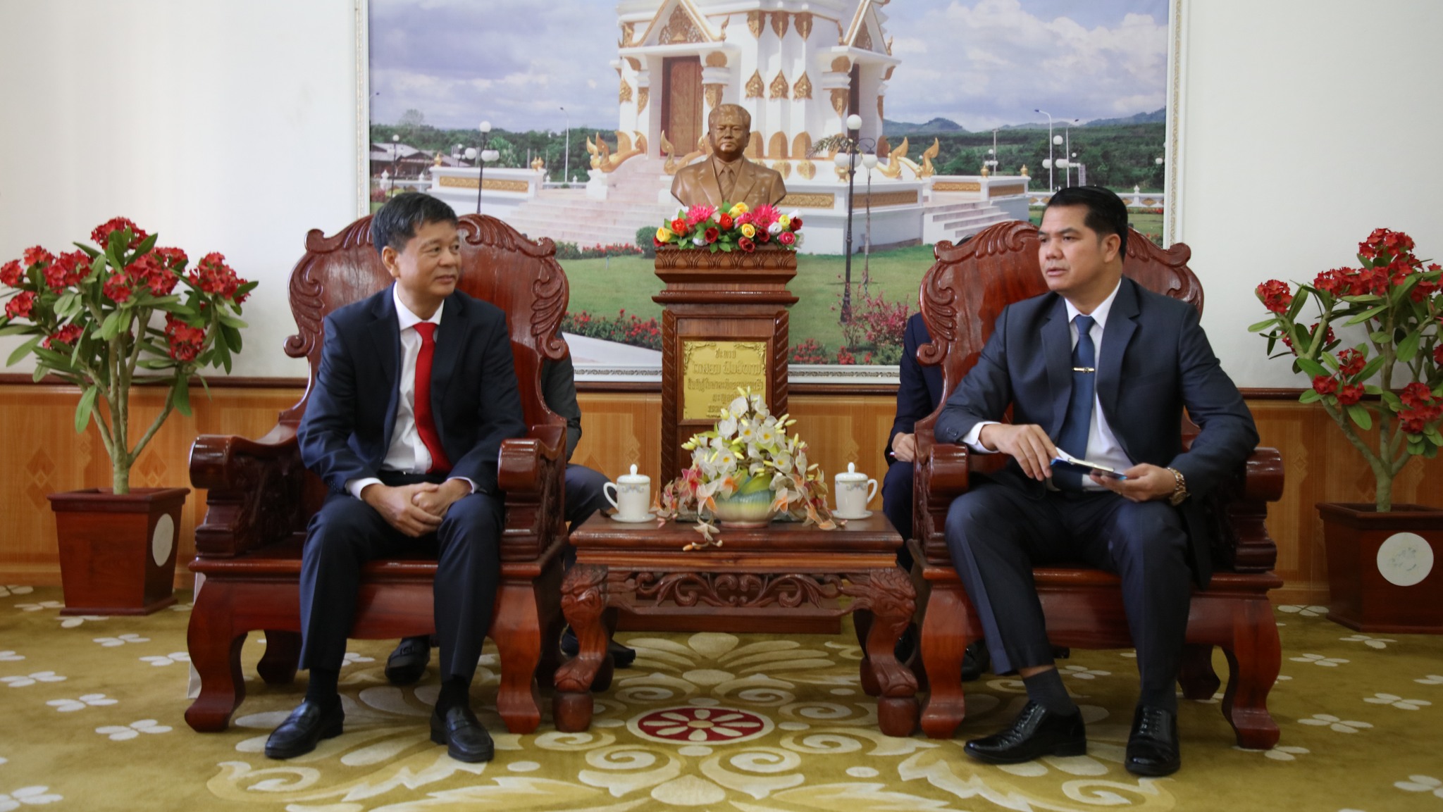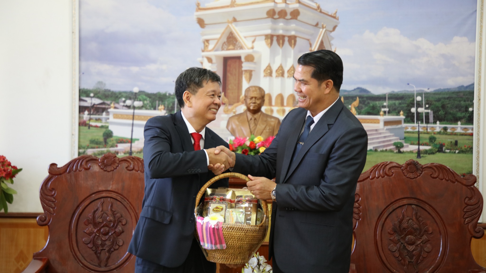 ຕອນເຊົ້າຂອງວັນທີ 13 ພະຈິກ 2025ນີ້ ສະຫາຍ ຫວູ່ ຫງ໋ອກ ລີ່ ຫົວໜ້າສະຖານກົງສູນໃຫຍ່ ສສ ຫວຽດນາມ ປະຈຳນະຄອນຫຼວງພະບາງ ພ້ອມດ້ວຍຄະນະ ໄດ້ເຂົ້າພົບສະຫາຍ ພົຈວ ແປ້ນຄຳ ບຸດຈັນແພງ ເລຂາພັກແຂວງ ຮັກສາການເຈົ້າແຂວງບໍ່ແກ້ວ ພ້ອມດ້ວຍຄະນະນຳຂອງແຂວງທີ່ຫ້ອງຮັບແຂກຫ້ອງວ່າການແຂວງ ແລະ ໄດ້ຮັບຟັງການລາຍງານສະພາບການຈັດຕັ້ງປະຕິບັດແຜນພັດທະນາເສດຖະກິດ-ສັງຄົມ ຍົກໃຫ້ເຫັນດ້ານດີຜົນງານການນຳພາຂອງຄະນະບໍລິຫານງານພັກແຂວງ ແລະ ສິ່ງທ້າທາຍຕ່າງໆທີ່ຈະໄດ້ພ້ອມກັນຜ່ານຜ່າ. ແຂວງບໍ່ແກ້ວປະກອບມີ 5 ເມືອງ, 1 ເຂດເສດຖະກິດພິເສດ, ມີ 248 ບ້ານ, ມີ 38.448 ຄົວເຮືອນ ມີພົນລະເມືອງທັງໝົດ 270.952 ຄົນ,ຍິງ 104.925 ຄົນ, ມີ 13 ຊົນເຜົ່າ, ຄວາມໜາແໜ້ນຂອງພົນລະ ເມືອງສະເລ່ຍ 36 ຄົນຕໍ່ກິໂລຕາແມັດ. ດ້ານການພັດທະນາແຂວງບໍ່ແກ້ວ ໄດ້ວາງຢຸດທະສາດໃນການພັດທະນາເສດຖະກິດ-ສັງຄົມໂດຍເລັ່ງໃສ່ສ້າງແຂວງບໍ່ແກ້ວ ໃຫ້ມີການຂະຫຍາຍຕົວສີຂຽວຍືນຍົງ, ພັດທະນາການບໍລິການ, ການຂົນສົ່ງ, ການທ່ອງທ່ຽວທີ່ມີຄຸນນະພາບເຊື່ອມຕໍ່ລະຫວ່າງແຂວງພາກເໜືອຂອງຫວຽດນາມສ້າງ ແຂວງເປັນບ່ອນຜະລິດສິນຄ້າກະສິກໍາສະອາດ ເພື່ອສະໜອງການຊົມໃຊ້ພາຍໃນ ແລະ ສົ່ງອອກໄປຕ່າງ ປະເທດ, ສ້າງແຂວງເປັນບ່ອນຜະລິດກະແສໄຟຟ້າຮັບໃຊ້ພາຍໃນ ແລະ ສົ່ງອອກຕ່າງປະເທດ. ການລົງທຶນແມ່ນ ເລັ່ງໃສ່ການພັດທະນາດ້ານພື້ນຖານໂຄງລ່າງ, ການແກ້ໄຂຄວາມທຸກຍາກ ແລະ ຈັດສັນບ່ອນທໍາມາຫາກິນຂອງປະຊາຊົນ, ການລົງທຶນແມ່ນສຸມໃສ່ດ້ານກະສິກໍາ, ພະລັງງານໄຟຟ້າ, ອຸດສາຫະກໍາ-ການຄ້າ, ການທ່ອງທ່ຽວ, ການບໍລິການ ແລະ ອື່ນໆ.