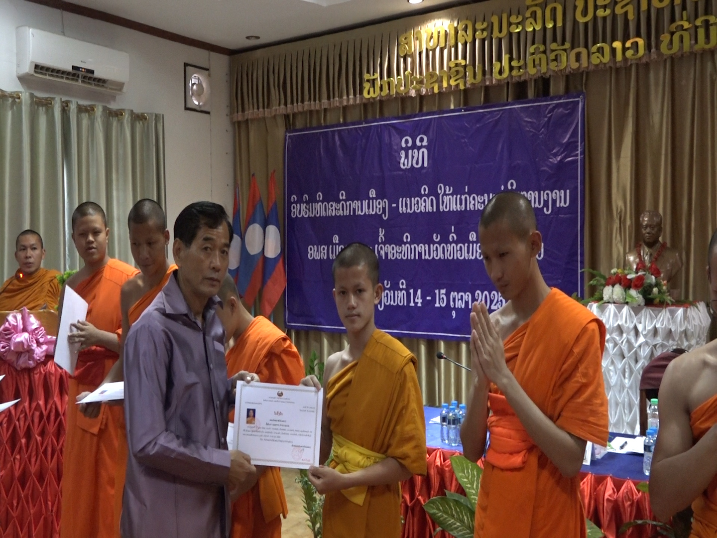 ຊຸຸດອົບຮົມທິດສະດີການເມືອງ-ແນວຄິດ ໃຫ້ເແກ່ຄະນະບໍລິຫານງານ ອພສ ເມືອງ ແລະ ເຈົ້າອະທິການວັດທົ່ວເມືອງຫ້ວຍຊາຍ ດໍາເນີ້ນເປັນເວລາ 2 ວັນ ແລະ ໄດ້ອັດລົົງດ້ວຍຜົນສໍາເລັດໃນວັນທີ 15 ຕຸລາ 2025, ໃຫ້ກຽດເຂົ້າຮ່ວມເປັນປະທານຊຸດອົບຮົມ ຂອງ ທ່ານ ສົມສັກ ປິ່ນແກ້ວ ຄະນະປະຈໍາພັກແຂວງ ຫົວໜ້າຄະນະໂຄສະອົບຮົມແຂວງ, ພຣະອາຈານ ປອ ໄຊຍະພອນ ສີປັນຍາ ຮອງປະທານ ອພສ ແຂວງ ເຈົ້າອະທິການວັດຈອມເຂົາມະນີຣັດ. ມີຄະນະບໍລິຫານງານ ອພສ ເມືອງ, ເຈົ້າອະທິການວັດທົ່ວເມືອງຫ້ວຍຊາຍ ແລະ ພຣະ-ສົງ ສາມະເນນເຂົ້າຮ່ວມ.