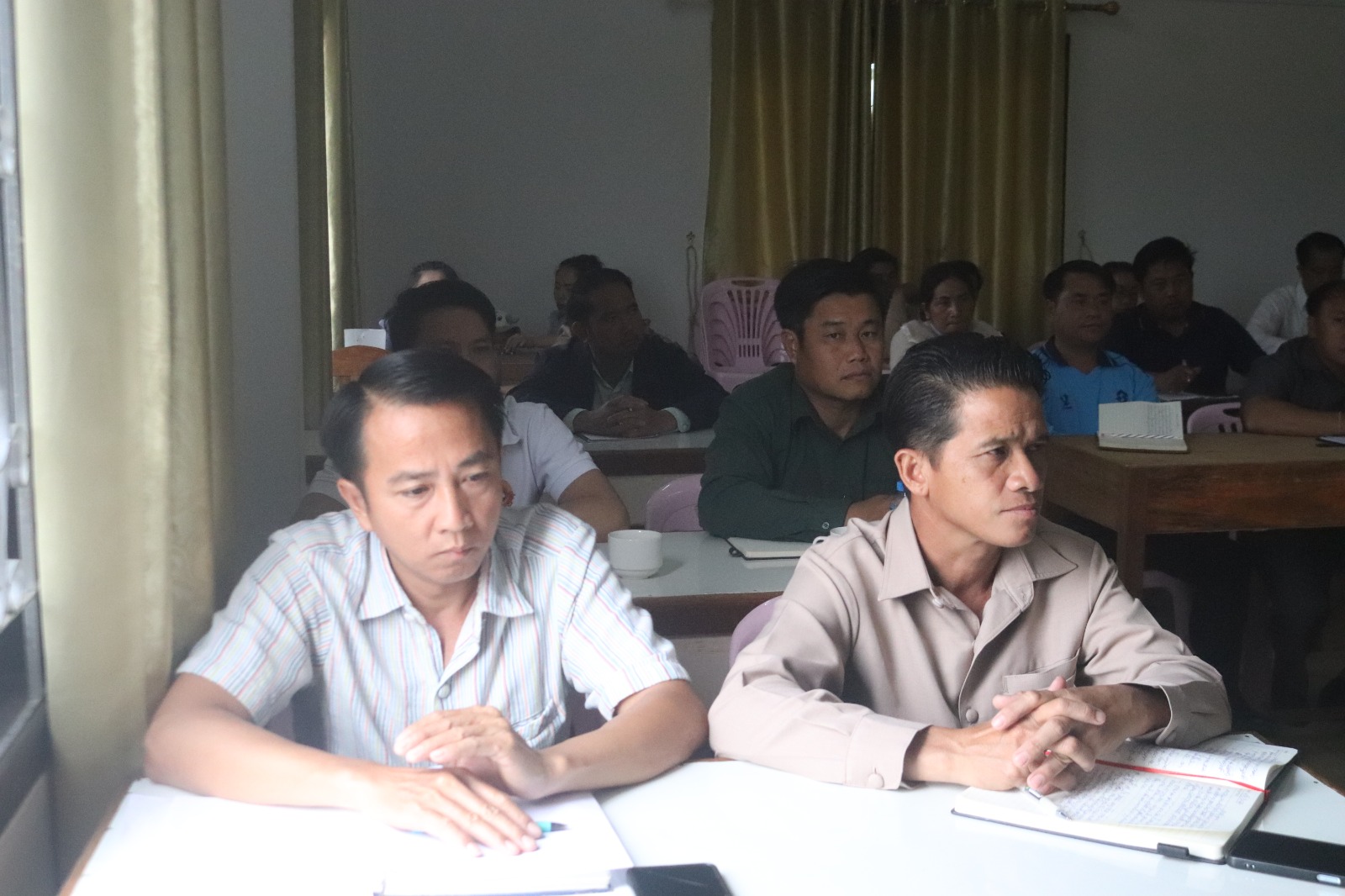 ທ່ານນາງ ມະນີວັນ ພັນປະເສີດ ຮອງເລຂາພັກເມືອງ ປະທານກວດກາພັກ-ລັດເມືອງ ຜູ້ຊີ້ນໍາວຽກງານພັກ-ພະນັກງານ ໄດ້ກ່າວວ່າ: ການລົງມາໂອ້ລົມຄັ້ງນີ້ ກໍ່ເພື່ອສຶກສາອົບຮົມການເມືອງແນວຄິດ ໃຫ້ຖັນແຖວ ສະມາຊິກພັກ ພະນັກງານລັດຖະກອນ ຂອງຫ້ອງການທີ່ຖືກຍຸບໂຮມເຂົ້າກັນ ພ້ອມທັງມີຄຳເຫັນແນະນຳເຊັນວ່າ: ໃຫ້ບັນດາສະຫາຍເຂົ້າໃຈວ່າ ການຍຸບໂຮມໂອນວຽກງານໃຫ້ຫ້ອງການຕ່າງໆ ມັນບໍ່ແມ່ນແຕ່ບ້ານເມືອງ, ແຂວງຂອງພວກເຮົາ ແຕ່ເພິນໄດ້ເລີມຈັດຕັ້ງປະຕິບັດ ມາແຕ່ຂັ້ນສູນກາງລົງຮອດທ້ອງຖິ່ນໃນຂອບເຂດທົ່ວປະເທດ, ໃນນີ້ບັນດາສະຫາຍທີ່ໄດ້ຮັບຜິດ ຊອບວຽກງານເກົ່າຢູ່ບັນດາຫ້ອງການທີ່ຖືກຍຸບໂຮມເຂົ້າກັນນັ້ນ ຕ້ອງເຮັດວຽກເປັນໝູ່ຄະນະ, ເຮັດວຽກຕາມຫຼັກການລວມສູນປະຊາທິປະໄຕ ປຶກສາຫາລືນຳຄະນະພັກ ຄະນະຫ້ອງການ ສຽງສ່ວນນ້ອຍຂື້ນກັບສຽງສ່ວນຫຼາຍ ບຸກຄົນຂື້ນກັບການຈັດຕັ້ງ, ຂັ້ນລຸ່ມຂື້ນກັບຂັ້ນເທິງ ຕົກລົງວຽກກັນແລ້ວຕ້ອງຮັບຮອງເປັນມະຕິໃຫ້ບັບດາສະ ຫາຍຫຼີກລ່ຽງແນວຄິດອັກຄະຕິຕໍ່ຜູ້ອື່ນບໍ່ຍາກບອກສອນວຽກໃຫ້ຜູ້ອື່ນ ຫຼີກລຽງທັດ ສະນະເອົາແຕ່ໃຈຕົນເອງ ຂົ່ມຂູ່ຜູ້ອື່ນ, ເຮັດວຽກແບບໃຊ້ອຳນາດ ມີແຕ່ໃຊ້ຄົນອື່ນ ແຕ່ຕົນເອງຊ້ຳພັດບໍ່ເຮັດ ລໍຖ້າແຕ່ຫົວໜ້າສັ່ງວຽກ ວຽກມັກຈຶ່ງເຮັດວຽກໃດທີ່ຕົນ ເອງບໍ່ມັກແລ້ວບໍ່ເຮັດ ບໍ່ໃຫ້ມີເດັດຂາດໃນຖັນແຖວພະນັກງານສະມາຊິກພັກຂອງພວກເຮົາ ນອກນີ້ ແຕ່ລະສະຫາຍຕ້ອງໄດ້ປັບປຸງຕົນເອງໃຫ້ເຂົ້າກັບໝູ່ຄະນະ ບໍ່ອວດອົງທະນົງຕົວ ບໍ່ຖືຕົນເອງສູງກວ່າຄົນອື່ນ, ເອົາໃຈໃສ່ເຮັດວຽກທີ່ຕົນເອງຮັບຜິດ ຊອບໃຫ້ບັນລຸຕາມການມອບໝາຍ ເຮັດວຽກຕາມພາລະບົດບາດໜ້າທີຂອງໜ່ວຍງານຕົນເອງ ຕ້ອງມີຄວາມສາມັກຄີຮັກແພງຊ່ວຍເຫຼືອເຊິງກັນ ແລະກັນ, ພ້ອມກັນປະຕິບັດໜ້າທີວຽກງານໃຫ້ປະສົບຜົນສຳເລັດ.