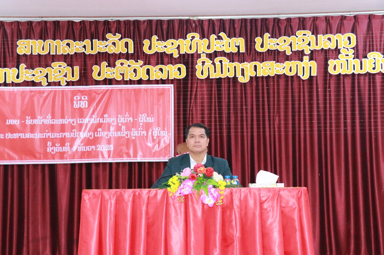 ເມືອງຕົ້ນເຜິ້ງ ປະກາດການແຕ່ງຕັ້ງ ມອບ-ຮັບ ໜ້າທີ່ເລຂາຄະນະບໍລິຫານງານພັກເມືອງ ລະຫວ່າງຜູ້ເກົ່າ ແລະ ຜູ້ໃໝ່ລະຫວ່າງຜູ້ເກົ່າ ແລະ ຜູ້ໃໝ່