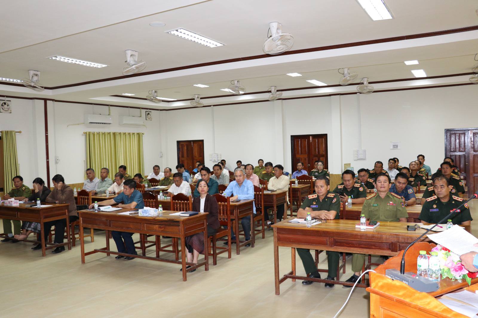ໂອກາດດັ່ງກ່າວ ສະຫາຍຍັງໄດ້ຮຽກຮ້ອງໃຫ້ຄະນະປ້ອງກັນຊາດ-ປ້ອງກັນຄວາມສະຫງົບຂອງເມືອງ: ສືບຕໍ່ປະຕິບັດຍຸດທະສາດໃນການຫັນລົງກໍ່ສ້າງຮາກຖານການເມືອງ ພັດທະນາຊົນນະບົດ ຮອບດ້ານຕາມ 4 ເນື້ອໃນ 4 ຄາດໝາຍ 4 ບຸກທະລຸຂອງພັກ, ຈັດຕັ້ງຜັນຂະຫຍາຍມະຕິກອງປະຊຸມໃຫຍ່ແຕ່ລະຂັ້ນຂອງພັກ, ປັບປຸງອົງການປົກຄອງຢູ່ຮາກຖານບ້ານໃຫ້ເຂັ້ມແຂງ, ຊີ້ນໍາ-ນໍາພາ ໃນການສ້າງສາພັດທະນາເສດຖະກິດ, ວັດທະນາທຳ-ສັງຄົມ ຕິດພັນກັບການສ້າງບ້ານປ້ອມໝັ້ນ, ກຸ່ມບ້ານ ສູ້ຮົບຕິດລຽນ ໃຫ້ໄດ້ທັງປະລິມານ ແລະ ຄຸນນະພາບ ເພີ່ມທະວີເອົາໃຈໃສ່ຕໍ່ການຕິດຕາມກຳແໜ້ນສະພາບ, ຍົກລະດັບຄວາມ ສາມາດໃນການເກັບກຳ, ວິເຄາະ, ວິໄຈ, ຕີລາຄາສະພາບການຮອບດ້ານທີ່ພົວພັນເຖິງ ວຽກງານປ້ອງກັນຊາດ-ປ້ອງກັນຄວາມສະຫງົບ; ສະພາບຊາຍແດນ, ສະພາບພາຍໃນ ແລະ ຕ່າງປະເທດ ເພື່ອທັບມ້າງກົນອຸບາຍຂອງກຸ່ມຄົນບໍ່ຫວັງດີ, ຄົ້ນຄວ້າແກ້ໄຂກໍລະນີຕ່າງໆທີ່ເກີດຂຶ້ນ ແລະ ບັນດາໜໍ່ແໜງທີ່ ຈະພາໃຫ້ເກີດຄວາມບໍ່ສະຫງົບ ຢູ່ໃນຂອບເຂດທ້ອງຖິ່ນຕົນ ພ້ອມທັງລາຍງານໃຫ້ຄະນະກຳມະການ ປກຊ-ປກສ ແຂວງ ຊາບທັນເວລາ ຮັບປະກັນບົດບາດການນໍາພາເດັດຂາດ, ໂດຍກົງ, ຮອບດ້ານຂອງພັກ ຕໍ່ກໍາລັງປ້ອງກັນຊາດ- ປ້ອງກັນຄວາມສະຫງົບ, ສ້າງ-ປັບ ປຸງກຳລັງປະກອບອາວຸດໃຫ້ເຂັ້ມແຂງ, ໜັກແໜ້ນທາງດ້ານການເມືອງ-ແນວຄິດ, ດ້ານການຈັດຕັ້ງ ສຸມໃສ່ປະຕິບັດແຜນພັດທະນາເສດຖະກິດ-ສັງຄົມ ຮັບປະກັນໃຫ້ຖືກທິດ, ຮັບປະກັນດ້ານປະລິມານ ແລະ ຄຸນນະພາບ; ສືບຕໍ່ເຮັດວຽກງານພົວພັນຕ່າງປະເທດໃຫ້ດີ, ຍາດແຍ່ງເອົາການສະໜັບສະໜູນຮ່ວມມືຈາກ ປະເທດເພື່ອນມິດໃນວຽກ ງານ ປກຊ-ປກສ ໃຫ້ຫຼາຍຂຶ້ນ, ພົວພັນຮ່ວມມືກັບຕ່າງປະເທດຢ່າງມີປະ ສິດທິຜົນ, ກວ້າງຂວາງ. ພ້ອມທັງມີການສົມທົບແໜ້ນລະຫວ່າງວຽກງານປ້ອງກັນຊາດ-ປ້ອງກັນຄວາມສະຫງົບ ກັບວຽກງານການຕ່າງປະເທດ ແລະ ກັບຂົງເຂດວຽກງານອື່ນໆ.