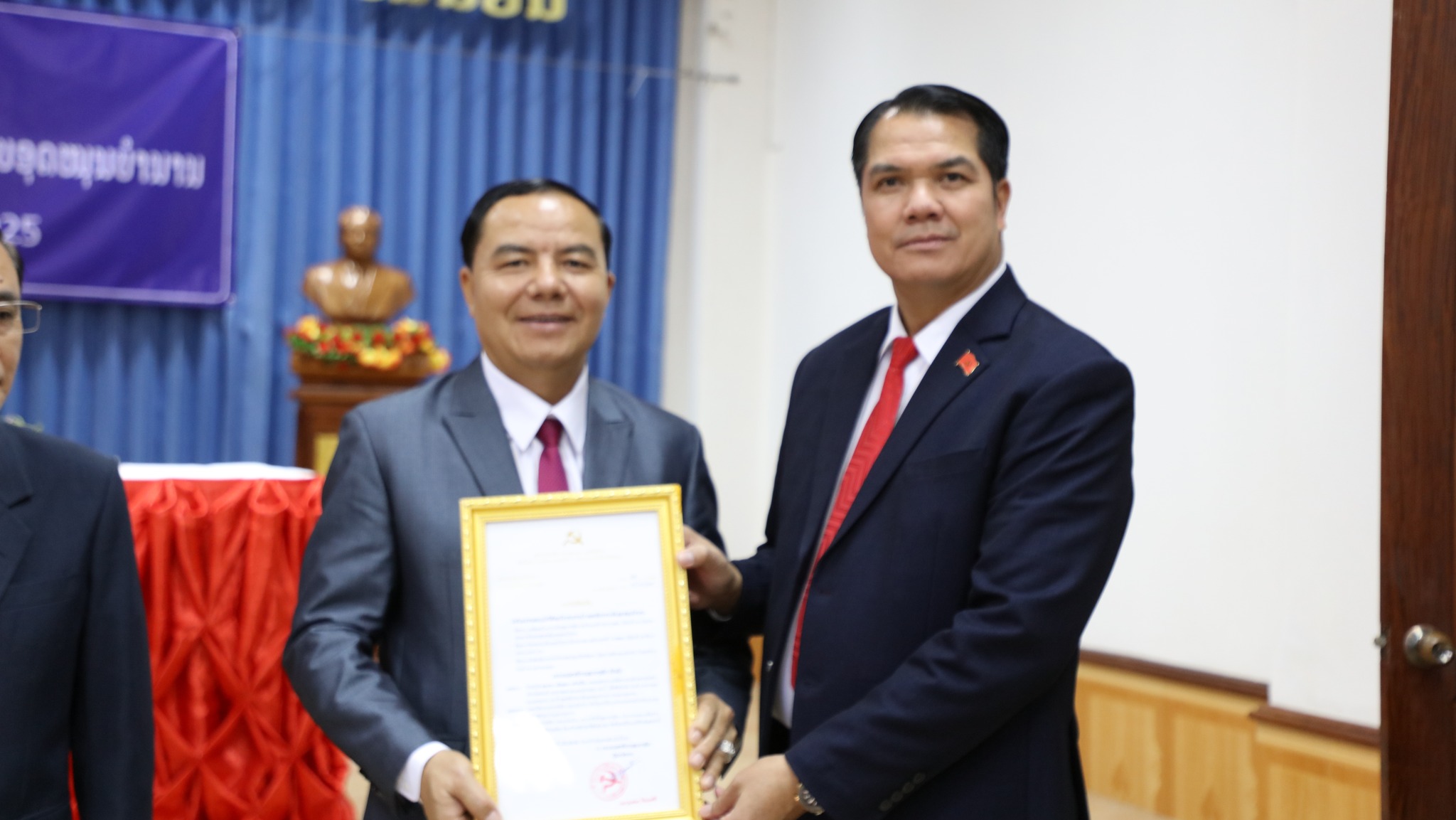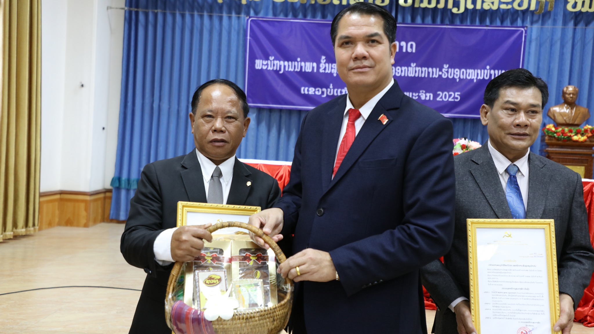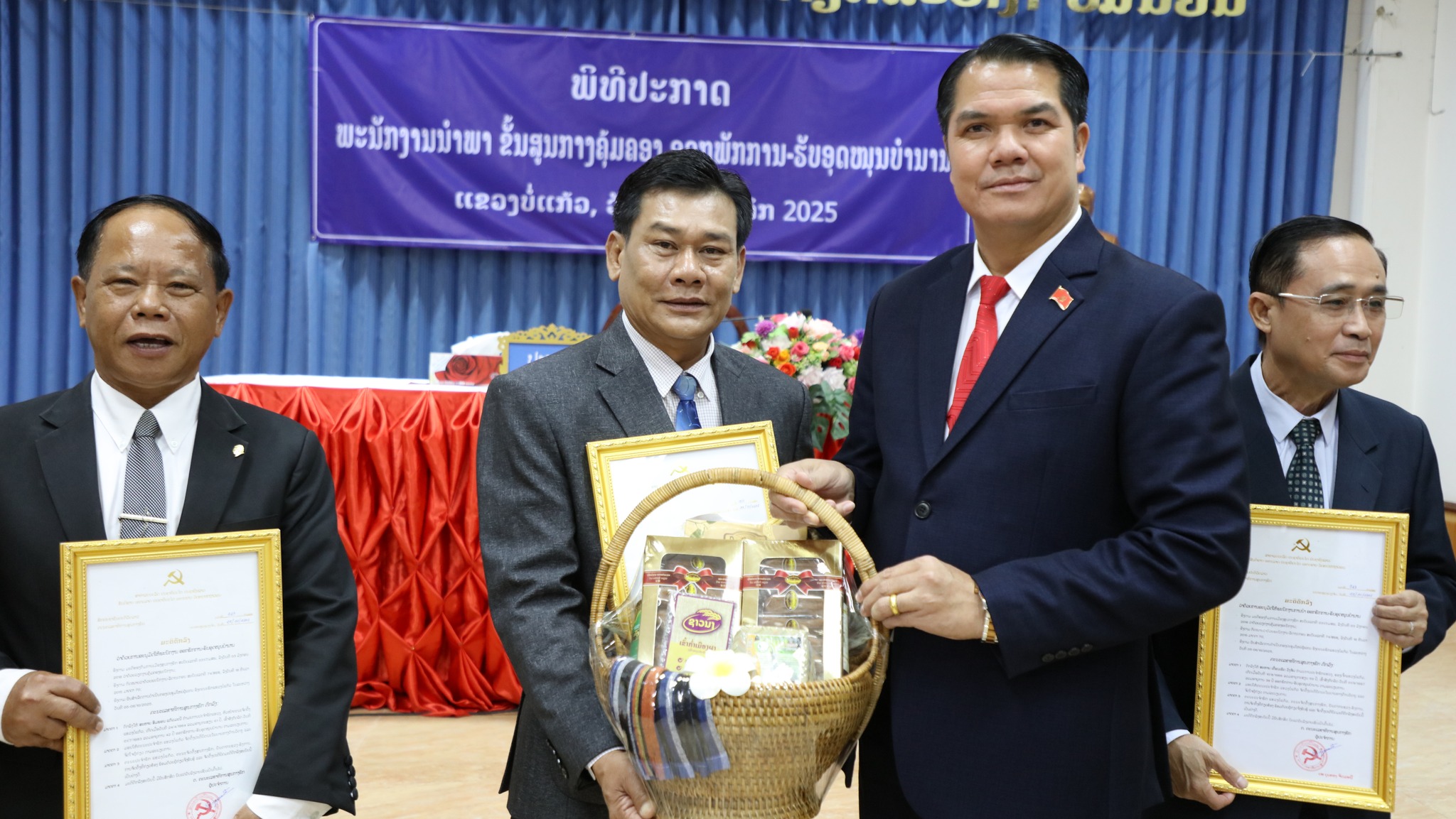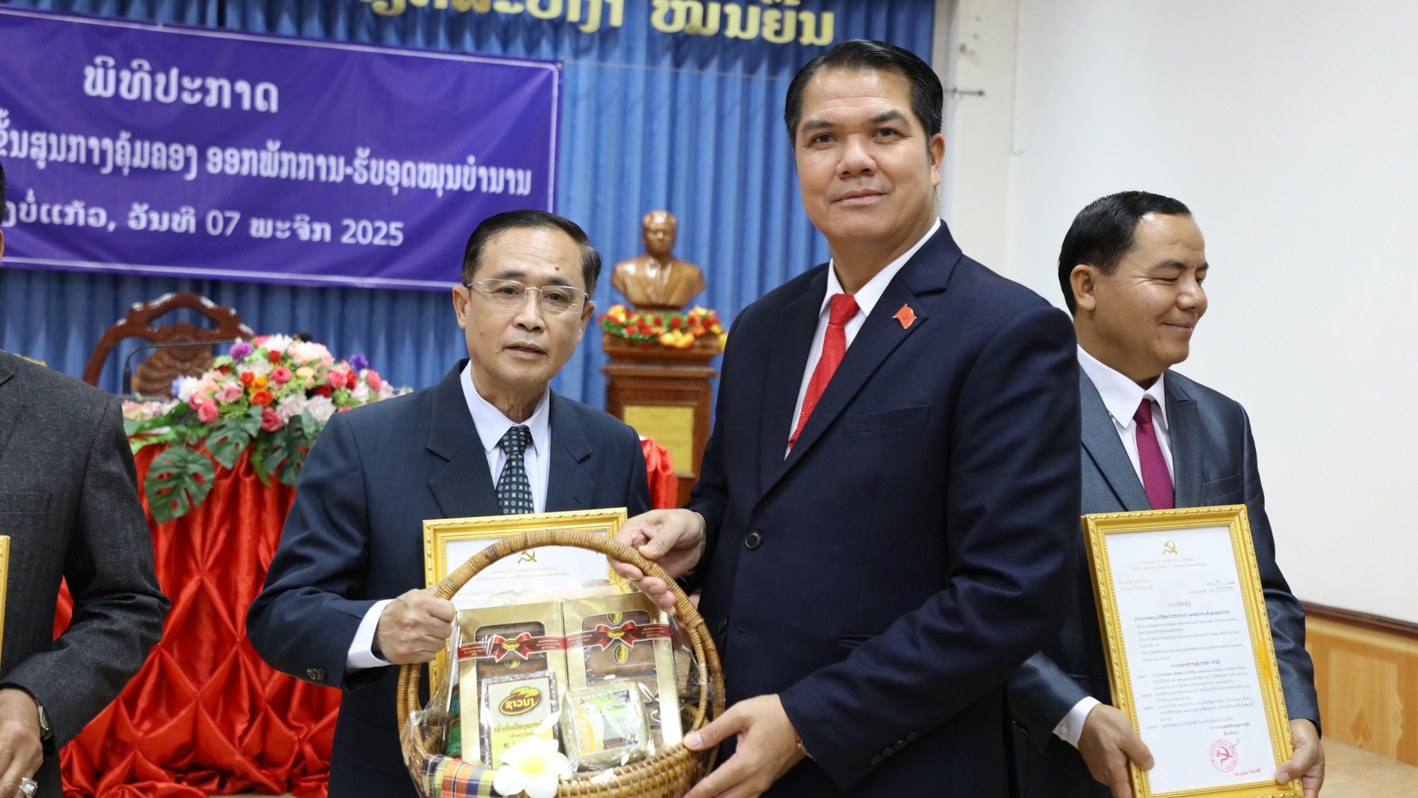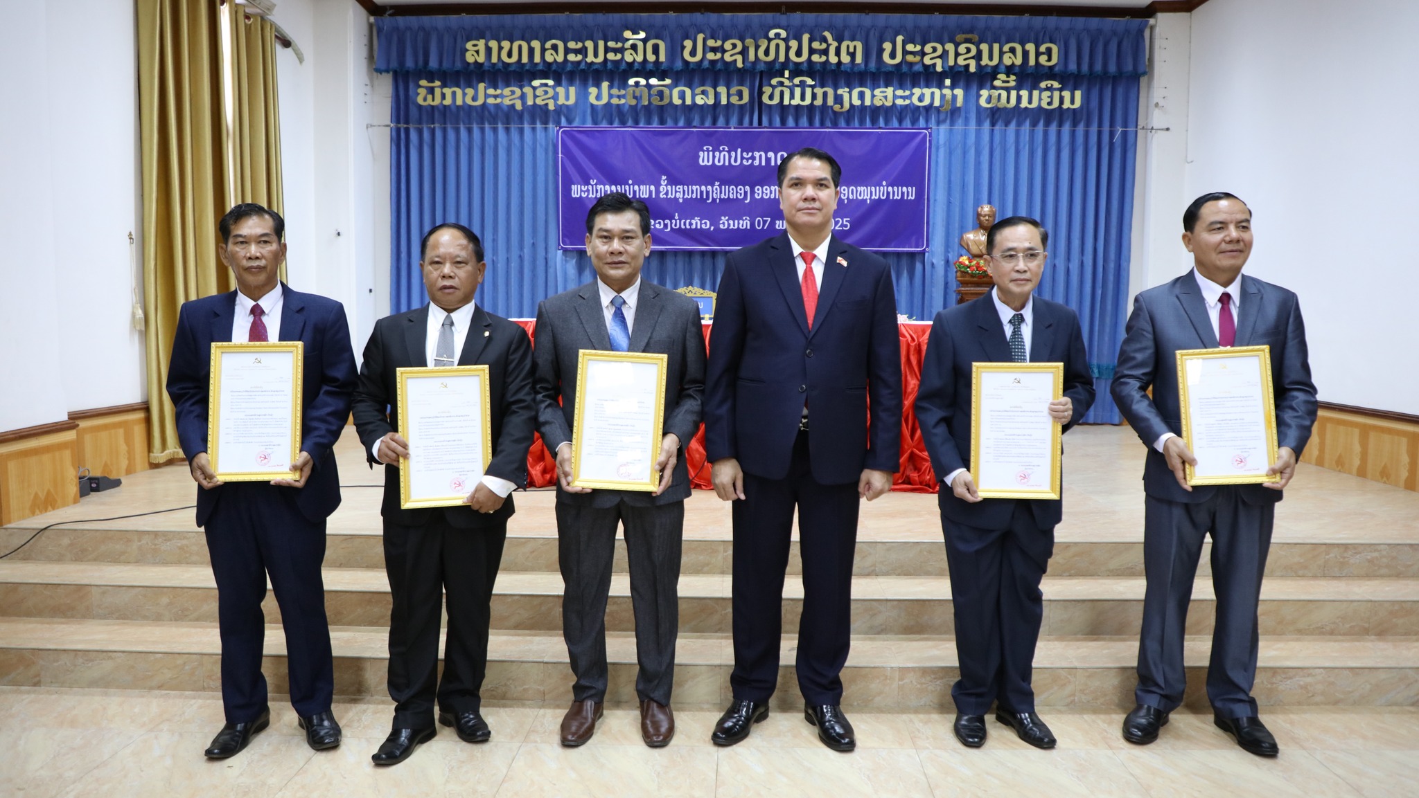 ພິທີປະກາດພະນັກງານນຳພາ ຂັ້ນສູນກາງຄຸ້ມຄອງ ອອກພັກການ-ຮັບອຸດໜູນບຳນານ ໄດ້ຈັດຂຶ້້ນໃນຕອນເຊົ້າຂອງວັນທີ 7 ພະຈິກ 2025ນີ້ ທີ່ຫ້ອງວ່າການແຂວງບໍ່ແກ້ວ, ເຂົ້າຮ່ວມມີສະຫາຍ ພົຈວ ແປ້ນຄຳ ບຸດຈັນແພງ ເລຂາຄະນະບໍລິຫານງານພັກແຂວງ, ຮັກສາການເຈົ້າແຂວງບໍ່ແກ້ວ, ມີບັນດາຄະນະປະຈຳພັກແຂວງ, ກຳມະການພັກແຂວງ, ຫົວໜ້າ-ຮອງຫົວໜ້າພະແນກການ, ອົງການທຽບເທົ່າ, ສອງກອງບັນຊາການທະຫານ-ຕຳຫຼວດ, ເລຂາ-ຮອງເລຂາພັກເມືອງ 5 ເມືອງ ແລະ ຄະນະຮັບຜິດຊອບເຂົ້າຮ່ວມ.