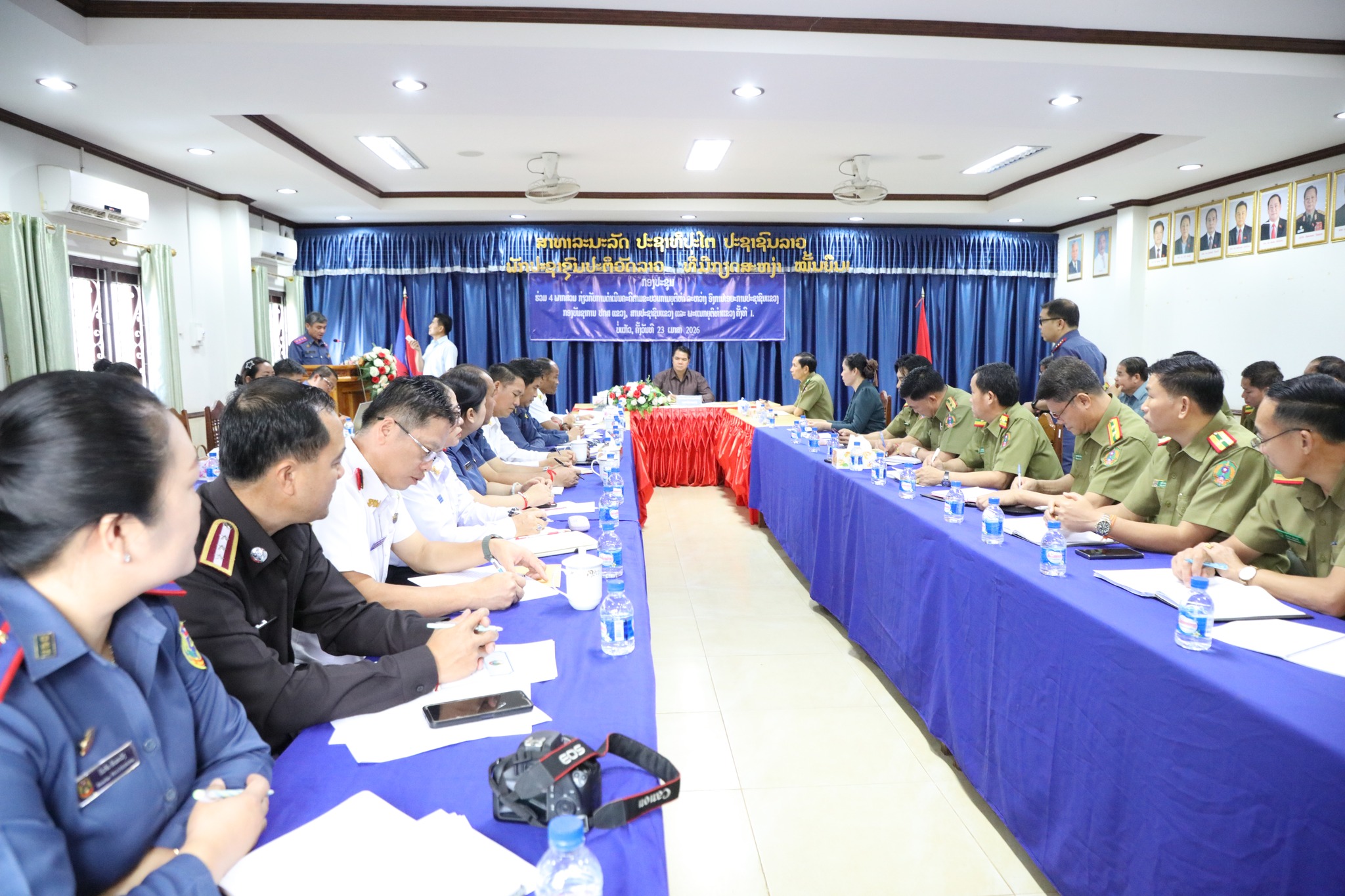 ກອງປະຊຸມຮ່ວມ 4 ພາກສ່ວນ ກ່ຽວກັບການດໍາເນີນຄະດີຕາມຂະບວນການຍຸຕິທໍາ ຄັ້ງທີ I ລະຫວ່າງ ອົງການໄອຍະການປະຊາຊົນແຂວງບໍ່ແກ້ວ, ກອງບັນຊາການ ປກສ ແຂວງ, ສານປະຊາຊົນແຂວງ ແລະ ພະແນກຍຸຕິທໍາແຂວງ ແມ່ນໄດ້ຈັດຂືຶ້ນໃນວັນທີ 23 ເມສາ 2026, ທີ່ພະແນກຍຸຕິທໍາແຂວງ ໂດຍການເປັນປະທານຂອງທ່ານ ພົນຈັດຕະວາ ແປ້ນຄໍາ ບຸດຈັນແພງ ກໍາມະການສູນກາງພັກ ເລຂາພັກແຂວງ ປະທານສະພາປະຊາຊົນແຂວງບໍ່ແກ້ວ, ມີບັນດາຄະນະພະແນກ, ຫົວໜ້າ, ຮອງຫົວໜ້າພະແນກ, ຫົວໜ້າ, ຮອງຫົວໜ້າຂະແໜງທັງ 4 ພາກສ່ວນເຂົ້າຮ່ວມ.
